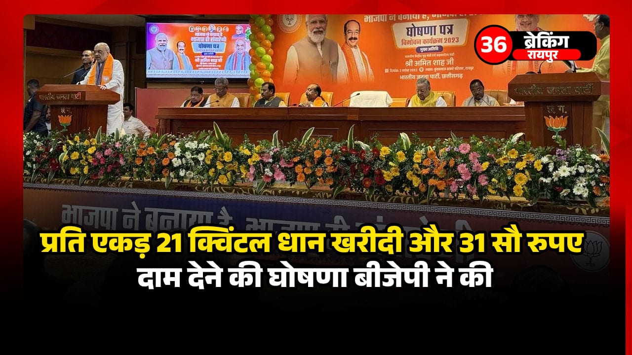 प्रति एकड़ 21 क्विंटल धान खरीदी और 31 सौ रुपए दाम देने की घोषणा बीजेपी ने की