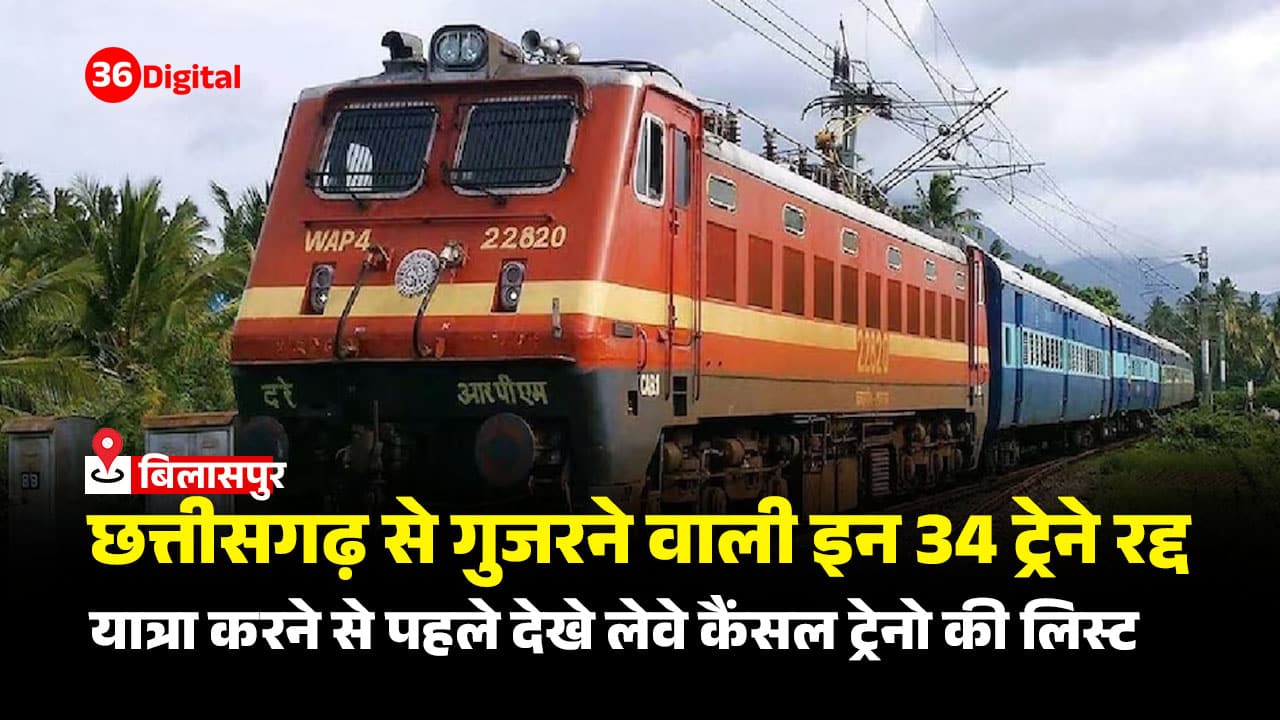 छत्तीसगढ़ से गुजरने वाली 34 ट्रेने रद्द, यात्रा करने से पहले देखे लेवे कैंसल ट्रेनो की लिस्ट