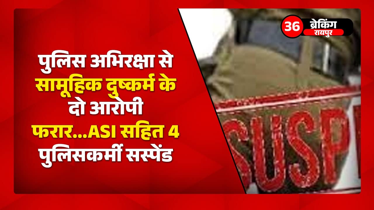 नाबालिग से दुष्कर्म और पुलिस अभिरक्षा से फरार दो आरोपियों के मामले में एक एएसआई व तीन काॅस्टेबल सस्पेंड कर दिये गए हैं। एसपी लाल उमेद ने कार्रवाई करते हुए सहायक उप निरीक्षक रोपन राम पैकरा, आरक्षक समीर कुजूर, आरक्षक अजय तिर्की और आरक्षक पंकज सिदार को सस्पेंड कर दिया है।