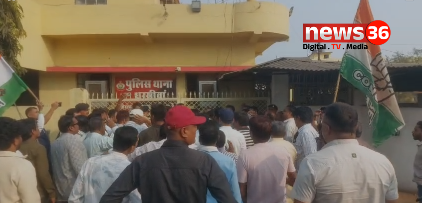 बिगड़ती कानून व्यवस्था को लेकर ब्लॉक कॉंग्रेस ने धरसीवा थाना का किया घेराव