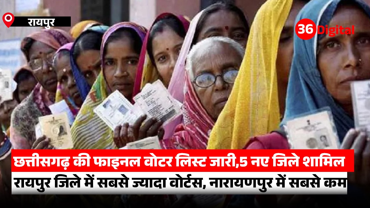 नई मतदाता सूची के अनुसार रायपुर जिले में सबसे अधिक 17 लाख 84 हजार 799 वोटर हैं। जबकि सबसे कम वोटर नारायणपुर जिले में 83 हजार 189 हैं। दिलचस्प है कि बस्तर जिले में महिलाएं 294068 पुरुषों 274119 मतदाताओं से ज्यादा हैं। चुनाव आयोग ने पांच नए जिलों की भी मतदाता सूची बनवाई।