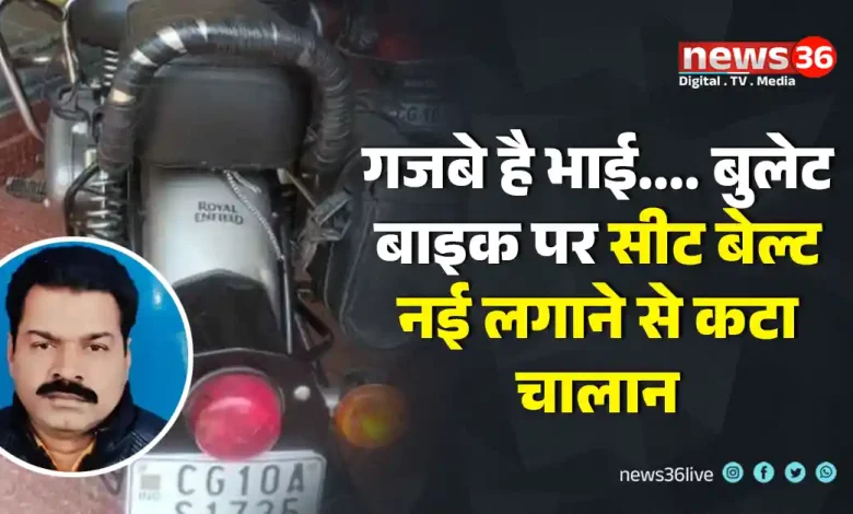 Chhattisgarh : गजबे है भाई…. बुलेट बाइक पर सीट बेल्ट नई लगाने से कटा चालान