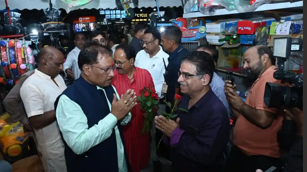 जीएसटी बचत उत्सव का जायजा लेने बाजार पहुंचे मुख्यमंत्री साय