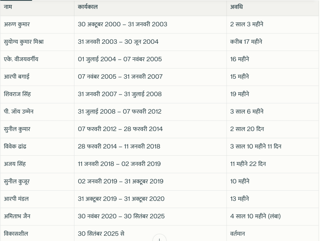 छत्तीसगढ़ के मुख्य सचिवों की सूची और कार्यकाल