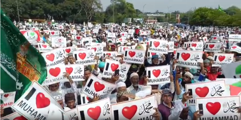 भिलाई। उत्तर प्रदेश के उन्नाव में कुछ मुस्लिम युवकों पर ‘आई लव मोहम्मद’ के पोस्टर लगाए जाने को लेकर पैदा हुआ विवाद अब छत्तीसगढ़ के भिलाई तक पहुंच गया है। आज जुमे की नमाज के बाद भिलाई के ईदगाह मैदान में हजारों मुस्लिम हाथों में ‘आई लव मोहम्मद’ के पोस्टर लेकर एकत्रित हुए।