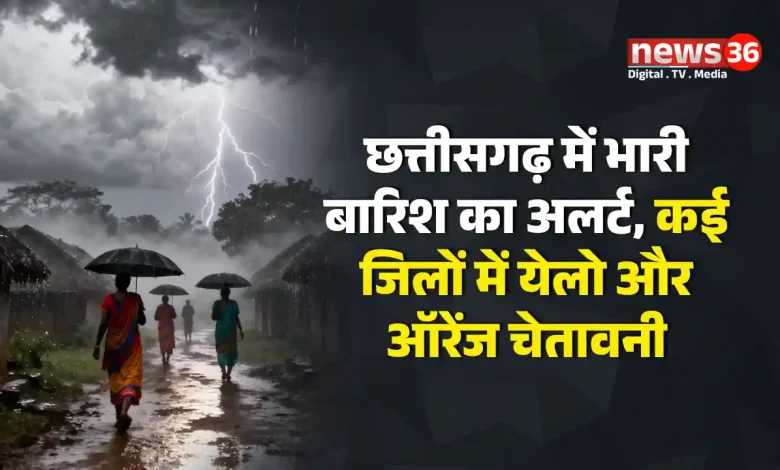 छत्तीसगढ़ में भारी बारिश का अलर्ट, कई जिलों में येलो और ऑरेंज चेतावनी