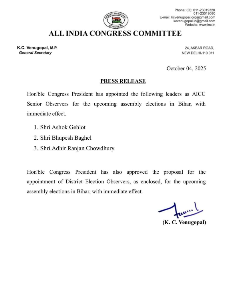 भूपेश बघेल बिहार चुनाव के लिए बनाए गए सीनियर ऑब्जर्वर