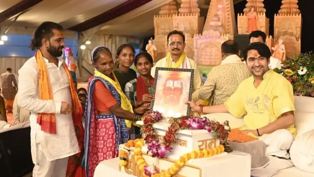 छत्तीसगढ़ की राजधानी रायपुर के गुढ़ियारी स्थित अवधपुरी मैदान में पंडित धीरेंद्र कृष्ण शास्त्री के हनुमंत कथा के तीसरे दिन एक अनोखी घटना सामने आई। मुर्रा भट्टी निवासी सलाम ने अपने पूरे परिवार के साथ सनातन धर्म को अपनाते हुए नया नाम ‘राजवीर’ ग्रहण किया।