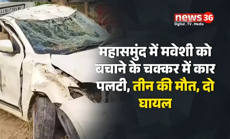 Chhattisgarh News : महासमुंद में मवेशी को बचाने के चक्कर में कार पलटी, तीन की मौत, दो घायल
