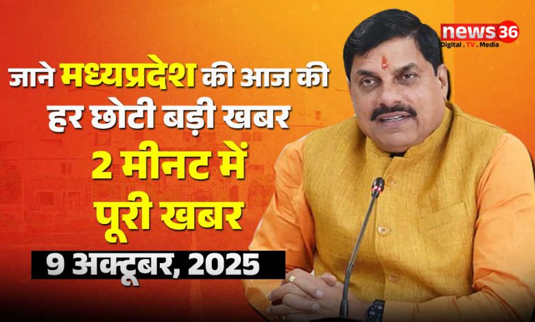 मध्यप्रदेश की आज दिनभर की हर खबर – हर अपडेट…पढ़े फटाफट अंदाज में ।। 09 अक्टूबर ।। 2025 ।।