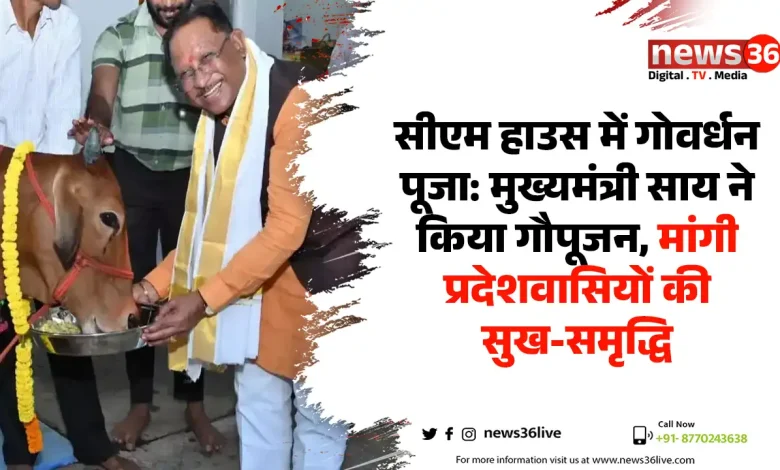 सीएम हाउस में गोवर्धन पूजा: मुख्यमंत्री साय ने किया गौपूजन, मांगी प्रदेशवासियों की सुख-समृद्धि