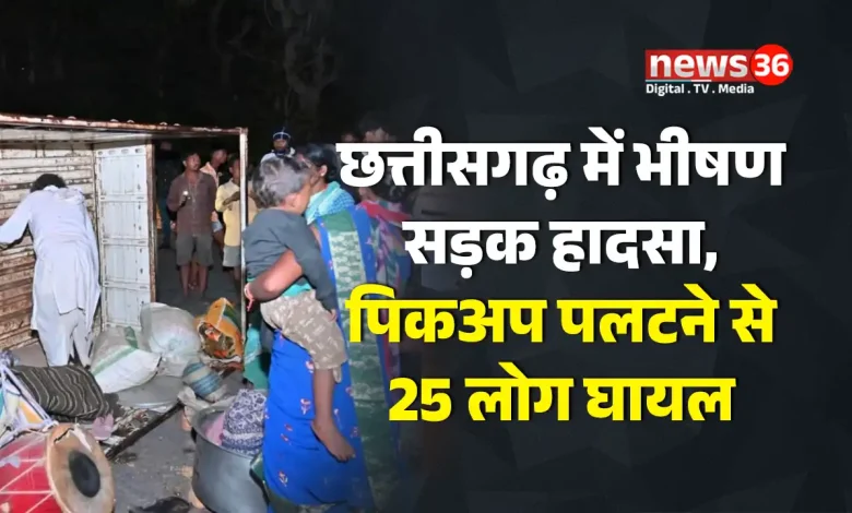 छत्तीसगढ़ में भीषण सड़क हादसा, पिकअप पलटने से 25 लोग घायल