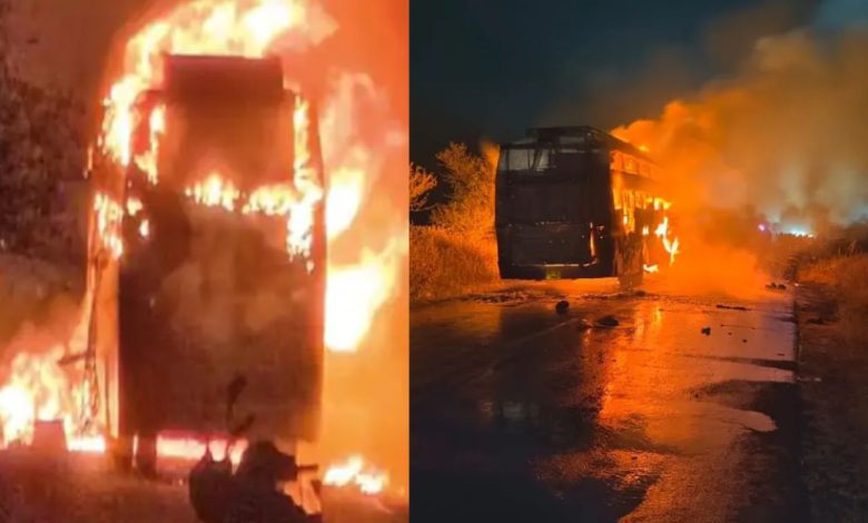 दर्दनाक हादसा : बस में आग लगने से बाल-बाल बचे 50 यात्री, देखें क्या हुआ था?”
