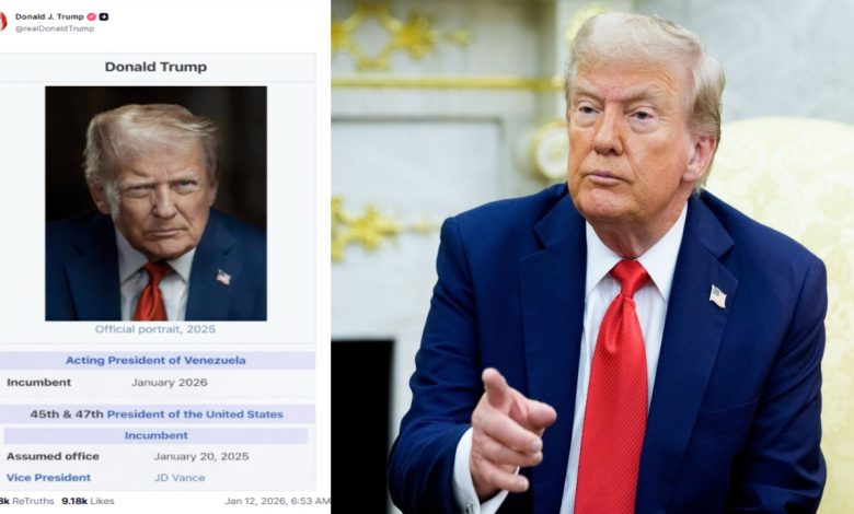 Venezuela President: अमेरिकी राष्ट्रपति डोनाल्ड ट्रम्प ने अपने सोशल मीडिया प्लेटफॉर्म ट्रुथ में खुद को ‘वेनेजुएला के कार्यवाहक राष्ट्रपति’ घोषित किया है. पोस्ट के अनुसार, ट्रंप जनवरी 2026 से वेनेजुएला के मौजूदा राष्ट्रपति हैं. हालांकि, ट्रंप अपने बयानों और सोशल मीडिया पोस्ट को लेकर हमेशा सुर्खियों पर रहते हैं. अब उनकी इस पोस्ट ने हलचल बढ़ा दी है.