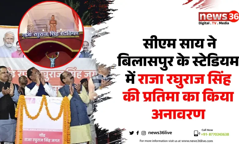 सीएम विष्णुदेव साय ने बिलासपुर शहर के मध्य स्थित रघुराज स्टेडियम में दानदाता गोंड राजा रघुराज सिंह जगत की आदमकद प्रतिमा का अनावरण किया।