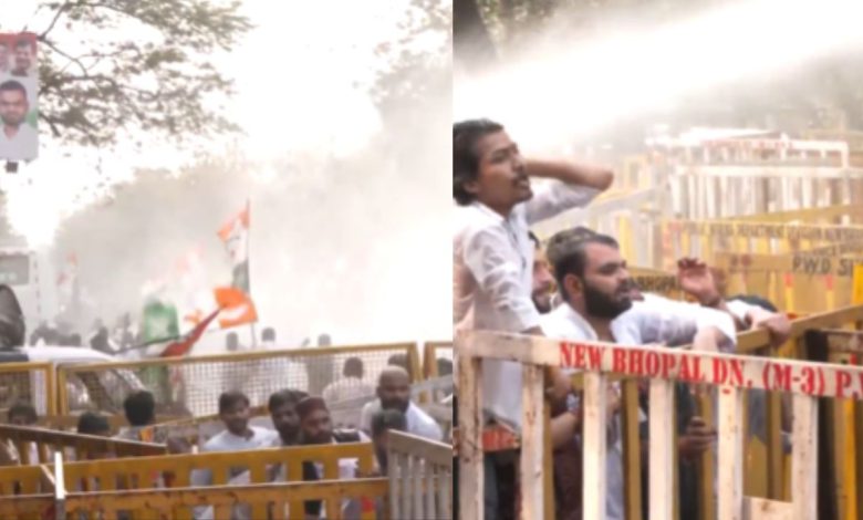 भोपाल में यूथ कांग्रेस का हंगामा: एसआईआर को लेकर पुलिस से झड़प, वॉटर कैनन चलाए