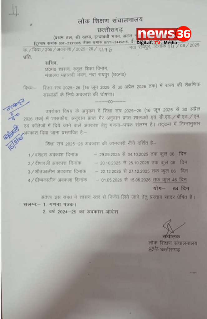 छत्तीसगढ़ के स्कूलों में इस महिने 8 दिनों की छुट्टी, जाने कब कब है छुट्टी
