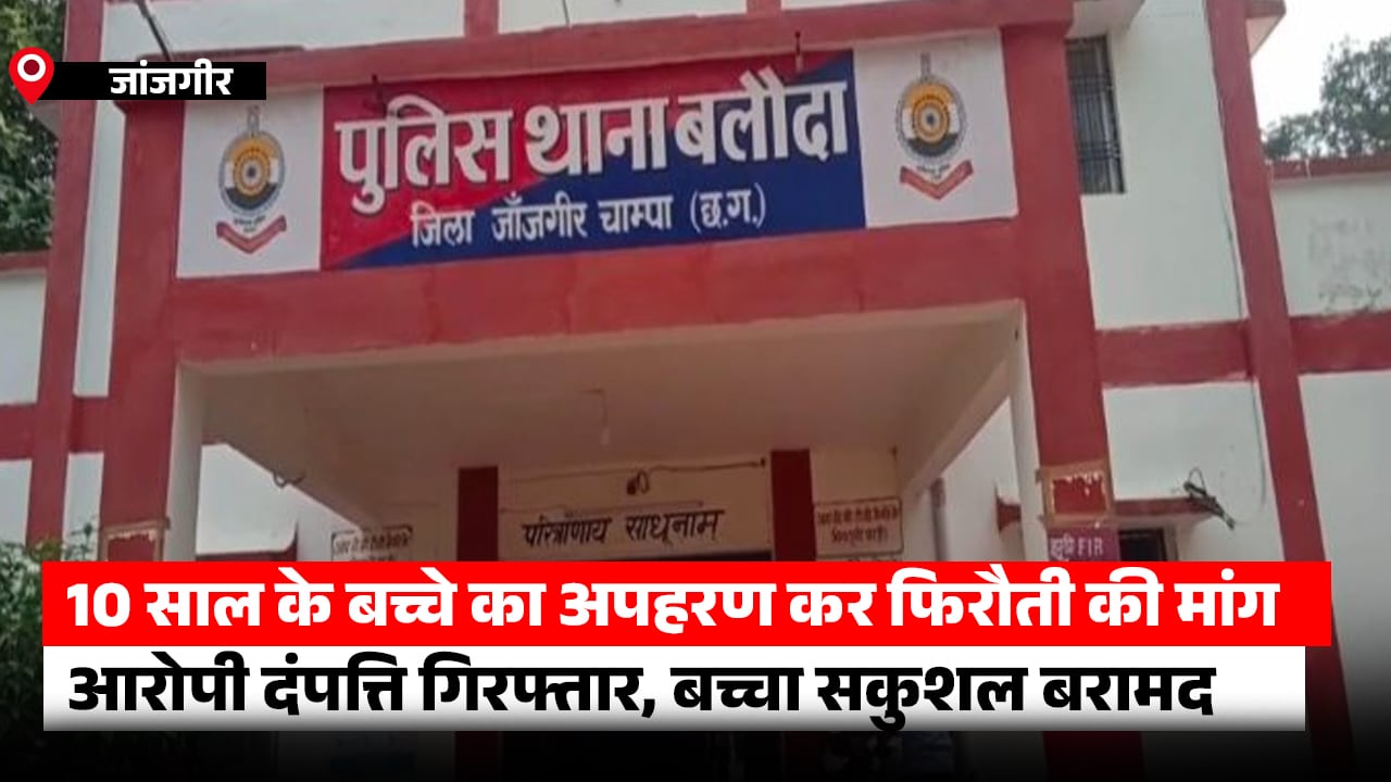 जांजगीर चांपा – बलौदा का शनिचराडीह गांव का मामला 10 साल के बच्चे का अपहरण कर 75 हजार की मांग,पुलिस ने आरोपी दंपत्ति को गिरफ्तार कर लिया है और मासूम को सकुशल बरामद कर लिया है