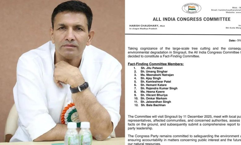 कांग्रेस की फैक्ट फाइंडिंग कमेटी के सभी सदस्य सिंगरौली जिले में जाएंगे. 11 दिसंबर को वहां लोगों से मुलाकात करेंगे. फैक्ट फाइंडिंग कमेटी के सदस्य पेड़ों की कटाई के मामले में वहां की स्थिति को लेकर स्थानीय लोगों से बातचीत करेंगे.