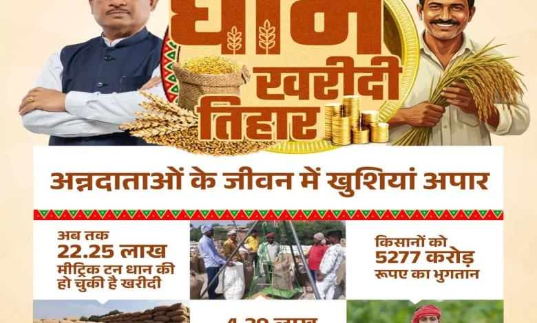 छत्तीसगढ़ में धान खरीदी तिहार की जबरदस्त रफ्तार, किसानों में बढ़ा उत्साह