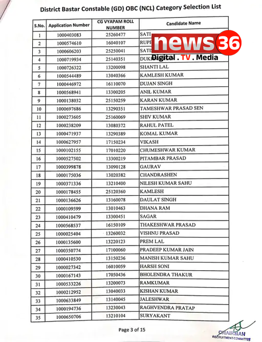 इसके अलावा मोटर वाहन चालक और अन्य ट्रेड आरक्षक के 91 पदों पर भी उम्मीदवारों का चयन किया गया है। चयन सूची और प्रतीक्षा सूची को एक साथ जारी किया गया है, जिसे अभ्यर्थी आधिकारिक PDF में देख सकते हैं।