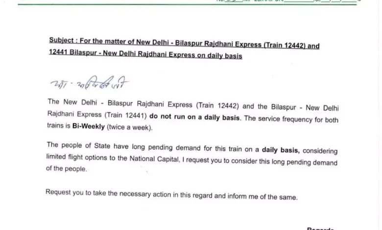 बिलासपुर–नई दिल्ली राजधानी एक्सप्रेस को दैनिक चलाने की मांग, रेल मंत्री ने दिया आश्वासन