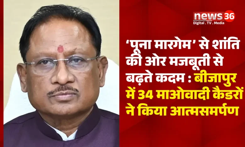 ‘पूना मारगेम’ से शांति की ओर मजबूती से बढ़ते कदम : बीजापुर में 34 माओवादी कैडरों ने किया आत्मसमर्पण