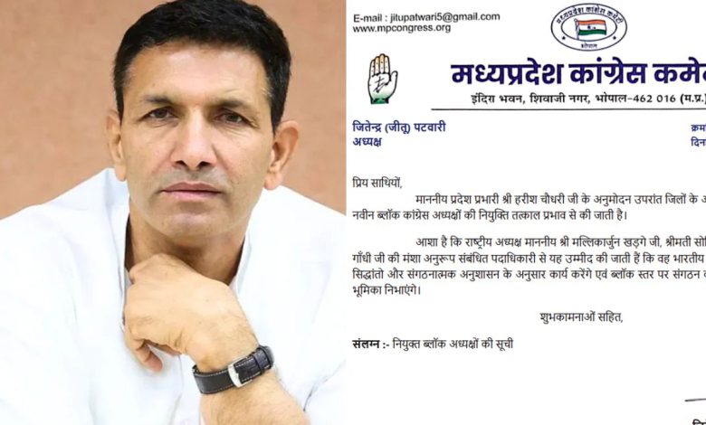 “MP कांग्रेस में बड़ा धमाका! जीतू पटवारी ने एक साथ नियुक्त किए 780 ब्लॉक अध्यक्ष, मैदान में उतरने को तैयार कांग्रेस की नई फौज