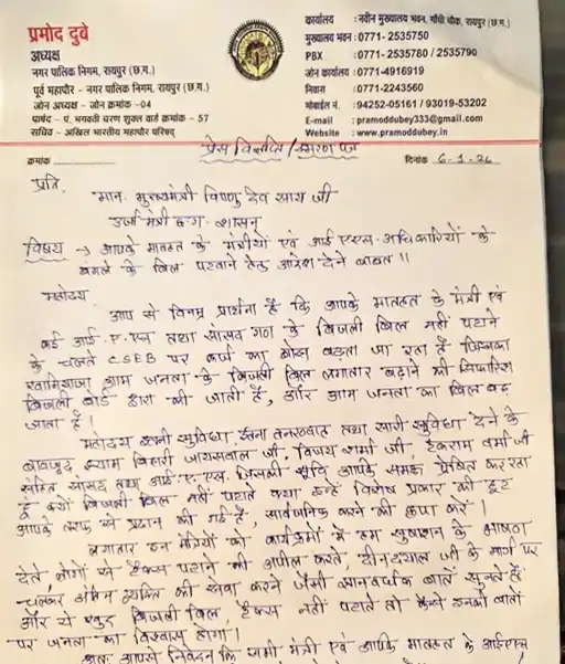 मामले को लेकर कांग्रेस मुखर है, कांग्रेस ने मुख्यमंत्री विष्णुदेव साय को पत्र लिखकर पूछा है कि क्या सत्ता में बैठे लोगों के लिए बिजली बिल के नियम अलग हैं। पार्टी का कहना है कि बिजली बोर्ड पर कर्ज का हवाला देकर आम उपभोक्ताओं के बिल बढ़ाने की सिफारिश होती है, जबकि असली बकाया सरकार के भीतर ही दबा पड़ा है। कांग्रेस का आरोप है कि आम लोगों से वसूली के लिए कटौती से लेकर कनेक्शन तक काटने की कार्रवाई होती है, लेकिन मंत्री, सांसद और अधिकारी आराम से बकाया पर बैठे हैं। पत्र में लिखा गया है कि जो नेता मंच से ईमानदारी और टैक्स भरने की नसीहत देते हैं, वही अपने बिजली बिल नहीं चुकाते तो जनता का भरोसा कैसे मजबूत रहेगा।