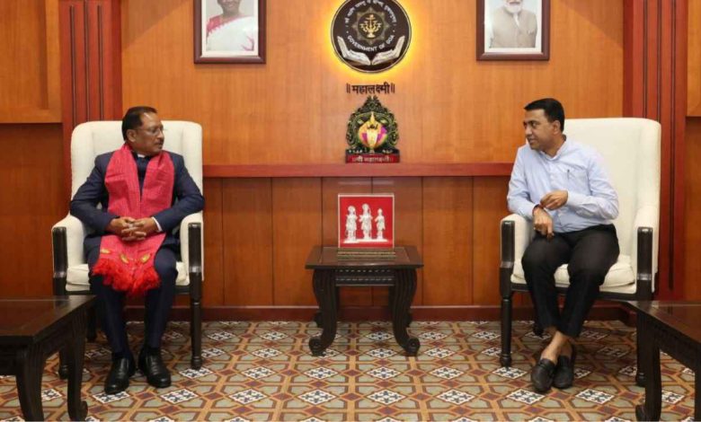 CG News: सीएम विष्णु देव साय दो दिन के गोवा दौरे पर हैं. जहां 8 जनवरी को वे गोवा पहुंचे, उन्होंने गोवा के मुख्यमंत्री डॉ. प्रमोद सावंत से की सौजन्य मुलाकात की. दोनों मुख्यमंत्रियों के बीच आपसी सहयोग और साझा हितों से जुड़े विषयों पर बातचीत हुई.