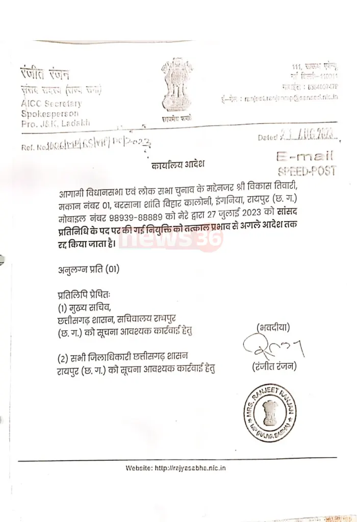 Chhattisgarh : अब इस पद से भी हटाए गए कांग्रेस से निष्काषित विकास तिवारी