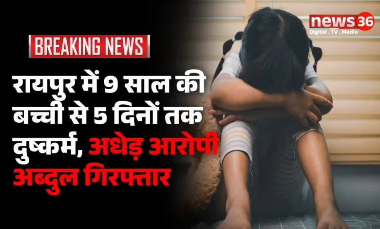 रायपुर। छत्तीसगढ़ की राजधानी रायपुर से मानवता को शर्मसार करने वाला मामला सामने आया है। शहर के सिविल लाइन थाना क्षेत्र में एक 55 वर्षीय व्यक्ति पर 9 साल की मासूम बच्ची के साथ लगातार पांच दिनों तक दुष्कर्म करने का आरोप लगा है। पुलिस ने आरोपी को हिरासत में ले लिया है और मामले की जांच जारी है।