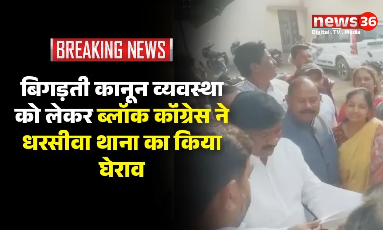 बिगड़ती कानून व्यवस्था को लेकर ब्लॉक कॉंग्रेस ने धरसीवा थाना का किया घेराव