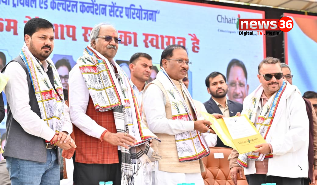रायपुर 24 जनवरी 2026// छत्तीसगढ़ का बरसों पुराना सपना आज साकार हो गया है। चित्रोत्पला फिल्म सिटी तथा ट्राइबल एंड कल्चरल कन्वेंशन सेंटर के निर्माण से फिल्म निर्माण के क्षेत्र में छत्तीसगढ़ को देश और दुनिया में एक नई पहचान मिलेगी। इस महत्वाकांक्षी पहल के माध्यम से छत्तीसगढ़ न केवल फिल्म निर्माण और सांस्कृतिक आयोजनों का एक प्रमुख केंद्र बनने की दिशा में अग्रसर होगा, बल्कि यह परियोजना राज्य की रचनात्मक अर्थव्यवस्था को भी नई गति प्रदान करेगी। चित्रोत्पला फिल्म सिटी और ट्राइबल एंड कल्चरल कन्वेंशन सेंटर के निर्माण से स्थानीय प्रतिभाओं को राष्ट्रीय-अंतरराष्ट्रीय मंच मिलेगा, निवेश के नए अवसर सृजित होंगे और छत्तीसगढ़ की सांस्कृतिक पहचान वैश्विक स्तर पर और अधिक सशक्त होगी। यह परियोजना आने वाले वर्षों में राज्य के युवाओं, कलाकारों और पर्यटन क्षेत्र के लिए विकास के नए द्वार खोलेगी। मुख्यमंत्री विष्णु देव साय ने आज राजधानी रायपुर के ग्राम माना-तूता में चित्रोत्पला फिल्म सिटी तथा ट्राइबल एंड कल्चरल कन्वेंशन सेंटर के भूमिपूजन कार्यक्रम को संबोधित करते हुए यह बात कही।