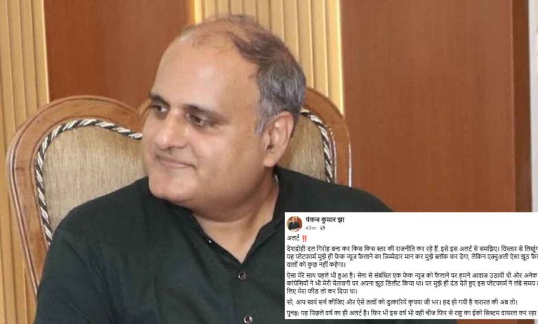 मुख्यमंत्री विष्णु देव साय के मीडिया सलाहकार पंकज कुमार झा ने सोशल मीडिया पर एक अलर्ट जारी किया है. उन्होंने साल 2025 की एक फेक खबर को शेयर करते हुए लिखा- ‘ अलर्ट! देशद्रोही दल गिरोह बना कर किस किस स्तर की राजनीति कर रहे हैं, इसे इस अलर्ट से समझिए. विस्तार से लिखूंगा तो यह प्लेटफार्म मुझे ही फेक न्यूज फैलाने का जिम्मेदार मान कर मुझे ब्लॉक कर देगा, लेकिन एक्चुअली ऐसा झूठ फैलाने वालों को कुछ नहीं कहेगा. ऐसा मेरे साथ पहले भी हुआ है. सेना से संबंधित एक फेक न्यूज को फैलाने पर हमने आवाज उठायी थी और अनेक कांग्रेसियों ने भी मेरी चेतावनी पर अपना झूठ डिलीट किया था. पर मुझे ही दंड देते हुए इस प्लेटफार्म ने लंबे समय तक के लिए मेरा फीड लो कर दिया था.’