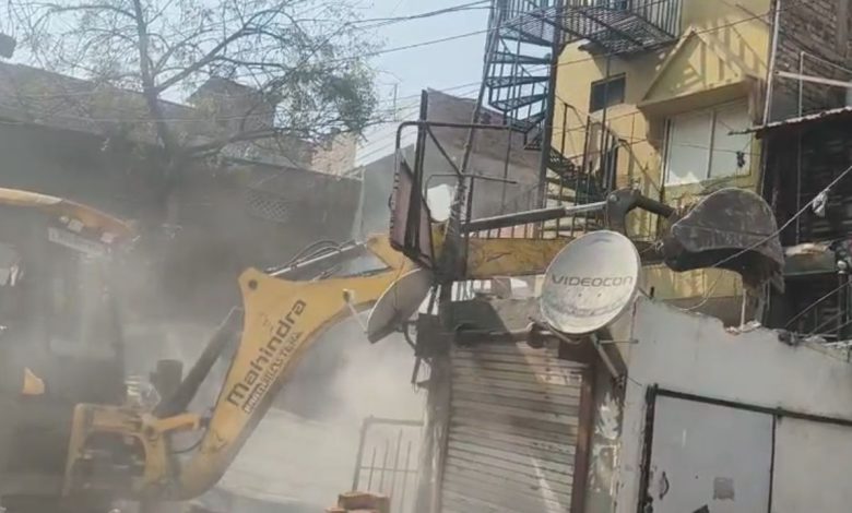 इंदौर में नाले पर अवैध निर्माण ध्वस्त, 21 मकानों पर बुलडोजर