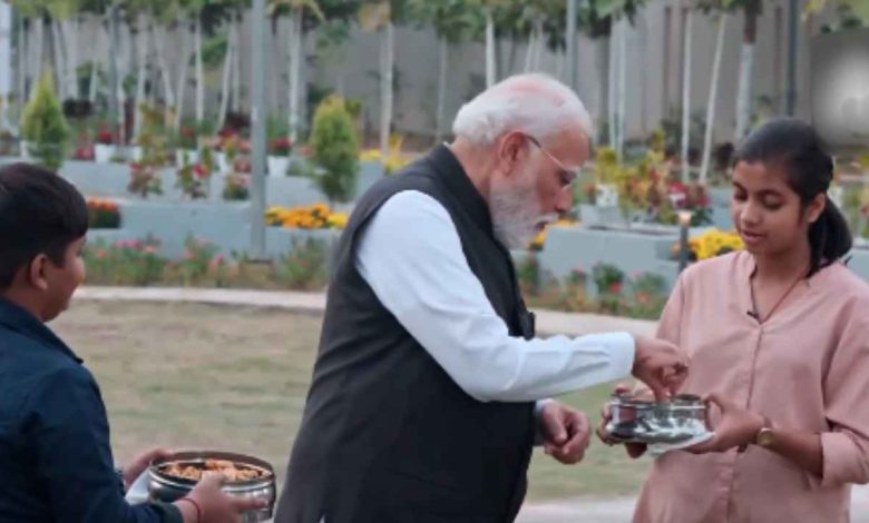 परीक्षा पे चर्चा में PM मोदी ने चखा ठेठरी-खुरमी का स्वाद