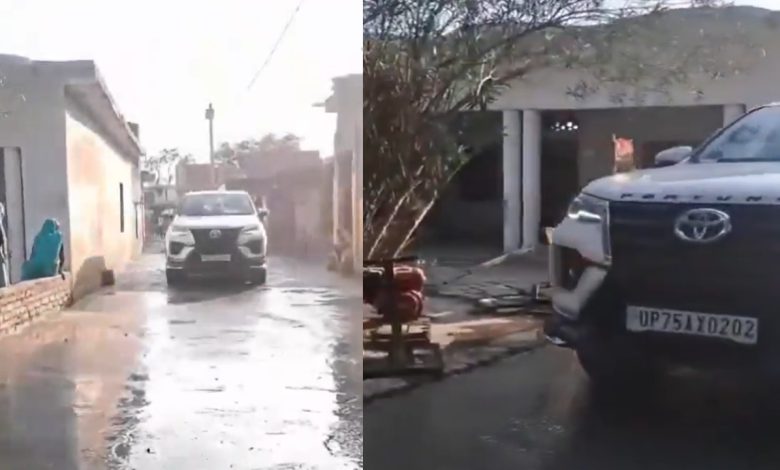 ‘जिस गाड़ी पर सपा का झंडा, उसमें बैठा है एक गुंडा’, नई बन रही सड़क पर फॉर्च्यूनर दौड़ाने वाले SP नेता पर BJP का हमला