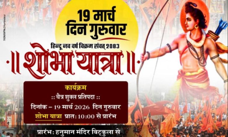 सीपत (हिमांशु गुप्ता) :– हिंदू नववर्ष विक्रम संवत 2083 के पावन अवसर पर सीपत क्षेत्र में धर्म, संस्कृति और एकता का भव्य प्रदर्शन देखने को मिलेगा। कल 19 मार्च को चैत्र शुक्ल प्रतिपदा (रामनवमी) के अवसर पर विशाल शोभायात्रा का आयोजन किया गया है, जिसमें हजारों श्रद्धालुओं के शामिल होंगे। यह भव्य शोभायात्रा सुबह 10 बजे हनुमान मंदिर बिटकुला से प्रारंभ होगी। यात्रा मड़ई, खम्हरिया, लुतरा, धनियां, हिन्डाडीह, गुड़ी एवं सीपत सहित विभिन्न मार्गों से होकर गुजरेगी और अंत में कौड़िया शैलेश्वर महादेव मंदिर में इसका समापन होगा।।शोभायात्रा के दौरान भगवा ध्वज, धार्मिक झांकियां, पारंपरिक वेशभूषा एवं भक्ति संगीत के साथ क्षेत्र का वातावरण पूर्णतः भक्तिमय हो जाएगा। आयोजन का उद्देश्य समाज में धर्म, संस्कृति और एकता का संदेश प्रसारित करना है। इस आयोजन का नेतृत्व सम्राट विक्रमादित्य समिति सीपत के तत्वाधान में किया जा रहा है। समिति के अध्यक्ष वैभव तंबोली ने बताया कि कार्यक्रम को सफल बनाने के लिए व्यापक तैयारियां की गई हैं और बड़ी संख्या में श्रद्धालुओं के शामिल होने की उम्मीद है। हिंदू नववर्ष के इस पावन अवसर पर आयोजित यह शोभायात्रा न केवल धार्मिक आस्था का प्रतीक बनेगी, बल्कि क्षेत्र में सामाजिक समरसता और सांस्कृतिक एकता को भी सुदृढ़ करेगी।