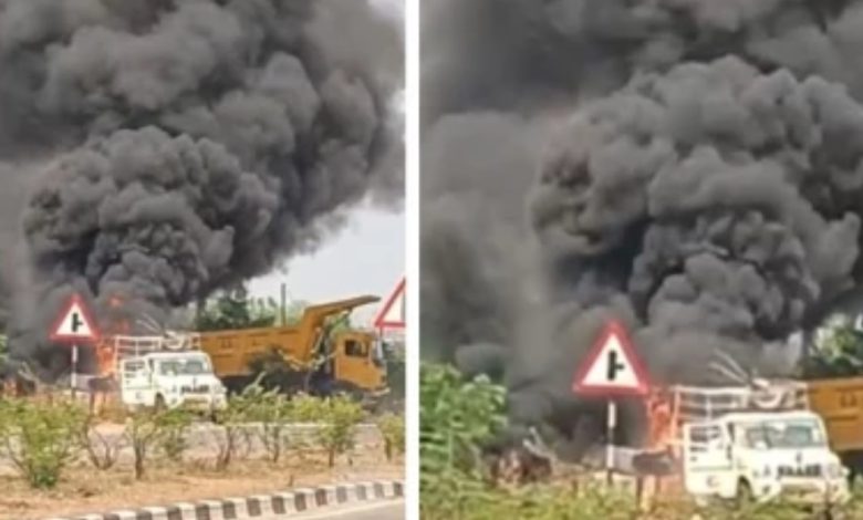 खबरों के अनुसार शहर के देवपुरी इलाके के पास रोड मार्किंग का काम चल रहा था. इसी दौरान मार्किंग करने वाली मशीन में अचानक आग लग गई. शुरूआत में तो आग मामूली समझ में आई लेकिन देखते ही देखते स्थिति गंभीर हो गई और आग तेजी से फैलने लगी. आग इतनी बढ़ गई कि आसमान में धुएं का गुबार नजर आने लगा.