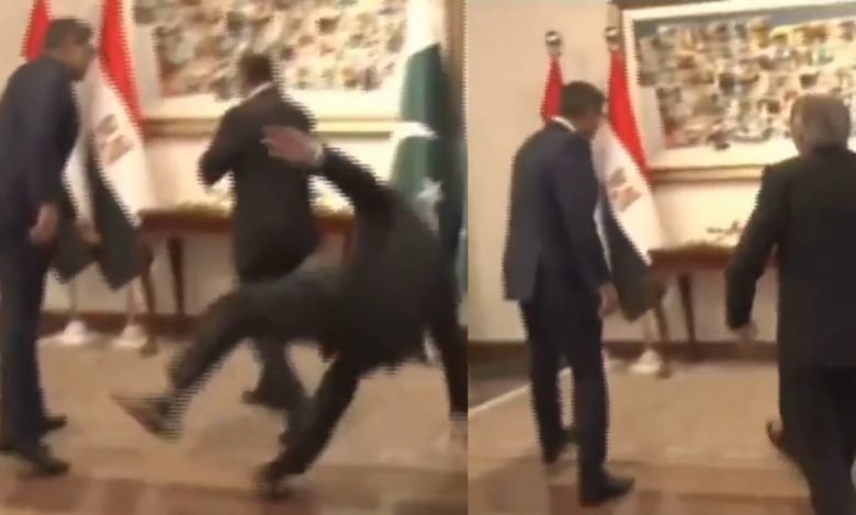 बैठक से पहले मेहमानों का स्वागत करते समय पाकिस्तान के विदेश मंत्री इशाक डार अचानक फिसलकर गिर गए। यह घटना कैमरे में कैद हो गई और वीडियो सोशल मीडिया पर तेजी से वायरल हो गया। इस दौरान डिप्टी पीएम के पैरों और कंधों में चोट आई।